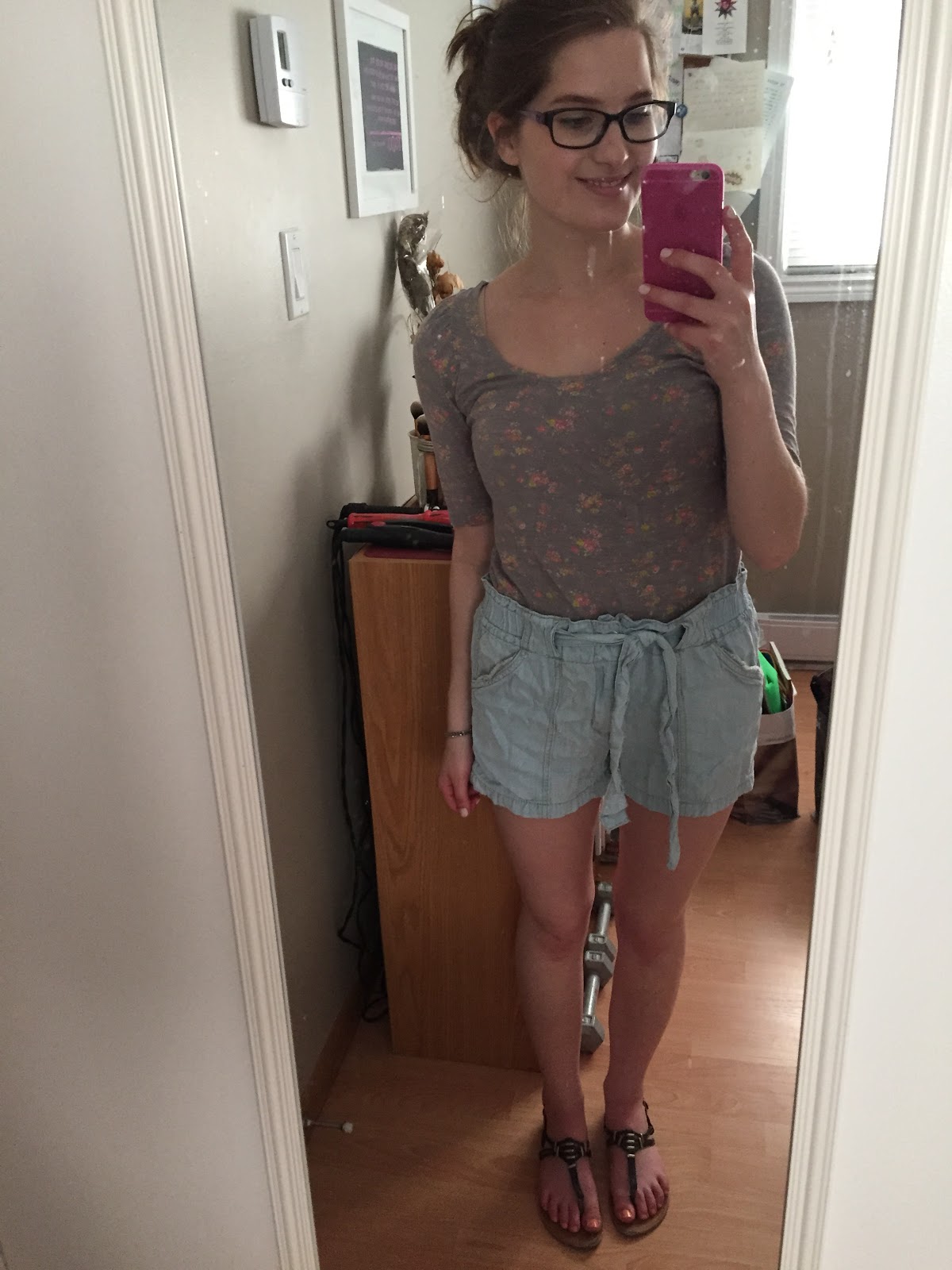 If I'm being honest I'm still not completely sold on these shorts. I do love the style and the colour but this particular pair feel really large in the waist. However on to the outfit of the day! It's sunny and warm here so I have opted for a summery outfit. My shirt is from Wal-Mart, my shorts are from Winners, and my strappy sandals are from Ardene